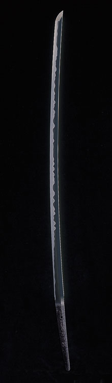 国路は堀川国広の門で一門中技術優秀の刀匠である。 八十二歳までも鍛刀したらしく作刀が多い筈が、現存するものは割合に少ない。 これは銘を落とされ相州上位に化けたものが多い故であろう。 総じて、相州伝風の国広や正俊に似て華やか。 この刀は、刃文は幅広く沸出来で華麗。沸匂の動きが見事である。