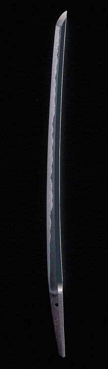 小林八郎右衛門。初代国助の子。中河内と呼ばれている。またその華麗な刃文から新刀一文字とも…。地鉄は小板目がよく詰み、細やかな杢肌が沈んで見えるものがあり、刃文は匂出来の拳形丁子を得意とする。 この脇差は、小板目よく詰み拳形丁子がとても美しい。