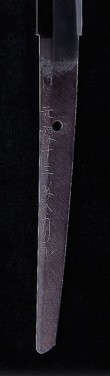 井上真改門人。のち内藤家に抱えられて磐城に移住す。 作刀は小板目よく詰んで細かな地沸がつく。鎬地柾で刃文は沸、匂深く互の目乱、湾、直刃などを焼き、砂流しかかるものもある。 この刀は、地鉄細かい小杢目肌がよく詰んで、美しく地が沸る。刃表の色は白く淡雪の積もれるようである。造込みは優しい姿で頃合で師に迫るものがある。 元禄十三年八月の作刀で楷書で師の真改銘に似た銘を切っている。