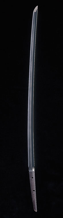 初代近江守粟田口忠綱の弟。太郎右衛門。 刀は先細り姿優しく地鉄はやや弱い気味の杢目肌である。刃文は焼幅広く匂本位 互の目丁子、足長丁子を焼く。 この刀は、姿優しく杢目肌で匂いの締まった細直刃で気品が感じられる。
