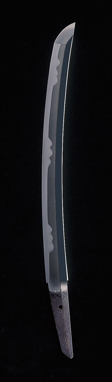 美濃国大野郡で、寿命から分かれた一派で岩捲に住したので、岩捲を銘の上に冠するようになった。地鉄は小板目よく詰み地沸がつく。刃文は湾れ小丁子、飛び焼交じり匂出来。 この脇差は、身幅があり重ね厚く珍しい造込み刃文も美しい。 裏銘に岩捲とある。