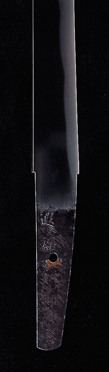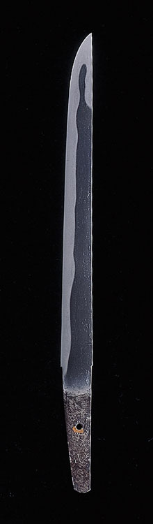 草野哲三郎。月山貞吉門人。 幅広で切先の延びた刀が多く小板目詰んで地沸つき、匂出来の直刃、互の目丁子を焼き小沸つく。 この短刀は、小板目よく詰んで、幕末にかけての作刀。